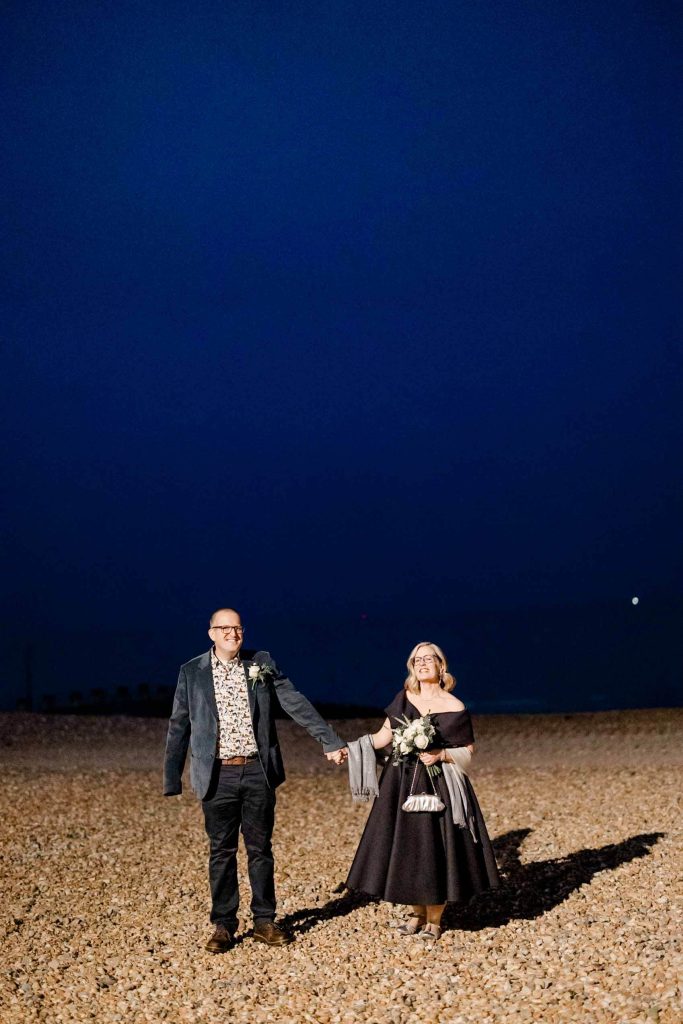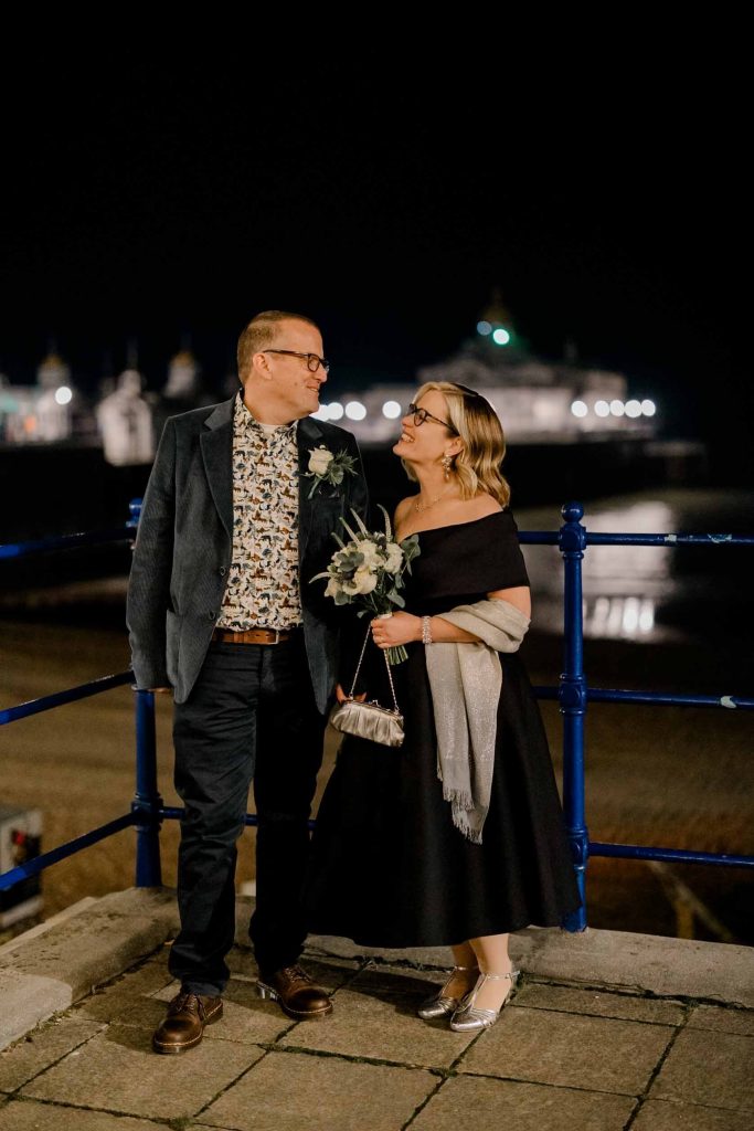 Jo and Tim booked me for a few hours to photograph their intimate ceremony in the Mayor’s Parlour in Eastbourne. It’s a wonderful small ceremony room and you can enjoy walking up and down the beautiful staircase too. Afterwards I followed them across the road for a drink and then we headed to the sea front for a walk along the promenade. The dark early evening atmosphere with the lights made for some lovely moments. Here’s to more wintery evening photo sessions!
