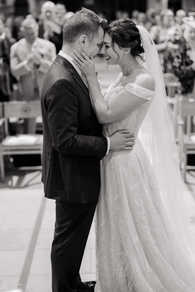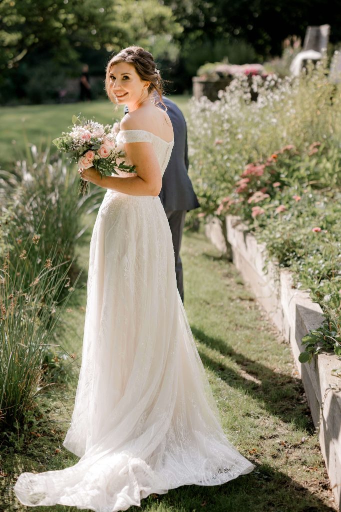 Before the ceremony, I captured smaller family group photos in a relaxed and fun way with each side of the family. Later, we kept formal family shots brief to allow Kirsty and Hugh more time with their guests. After the ceremony, the couple returned to Kirsty’s parents’ house for their portraits, enjoying a quiet moment together in the beautiful garden.