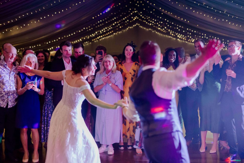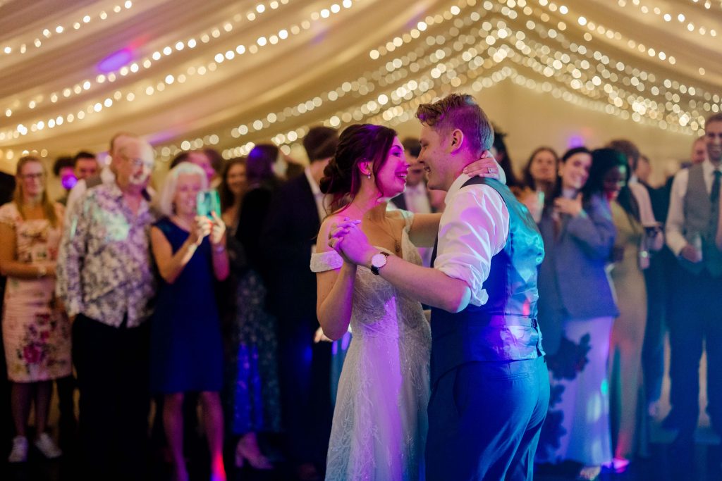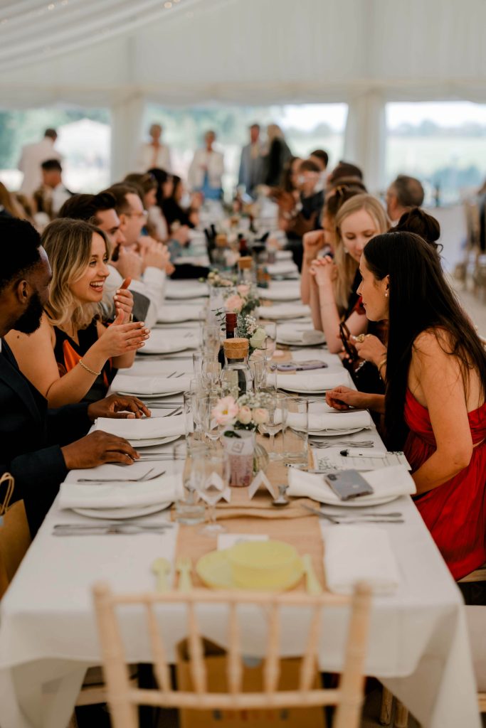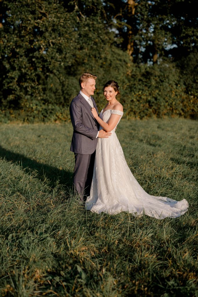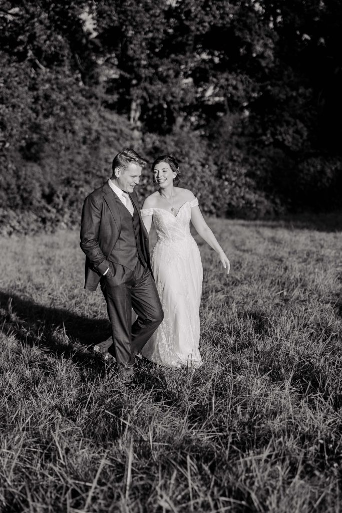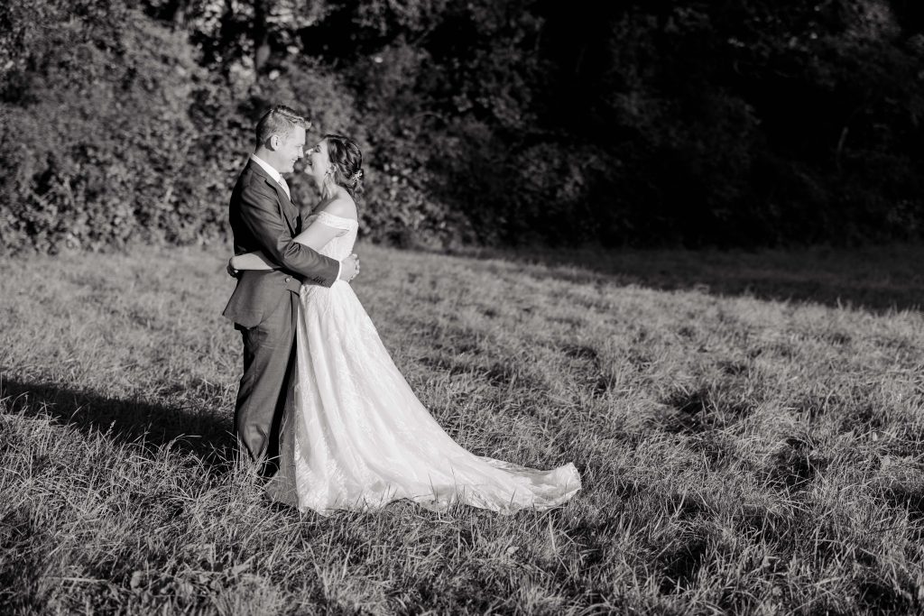 As the couple finished their portraits, guests began to arrive at the house, transitioning seamlessly into the marquee reception. The garden provided the perfect backdrop as guests mingled under the September sun, enjoying the warm and inviting atmosphere. To prioritise Kirsty and Hugh’s time with their loved ones, we scheduled photographs during natural pauses in the day. Golden hour provided a few more quiet moments to capture intimate, timeless shots of the couple.