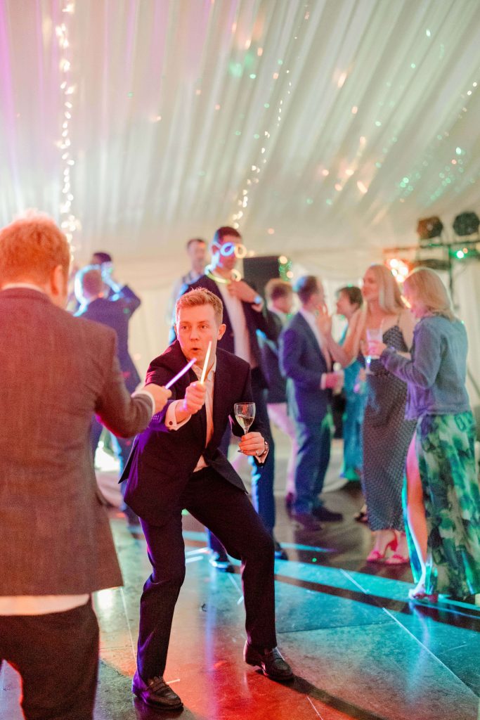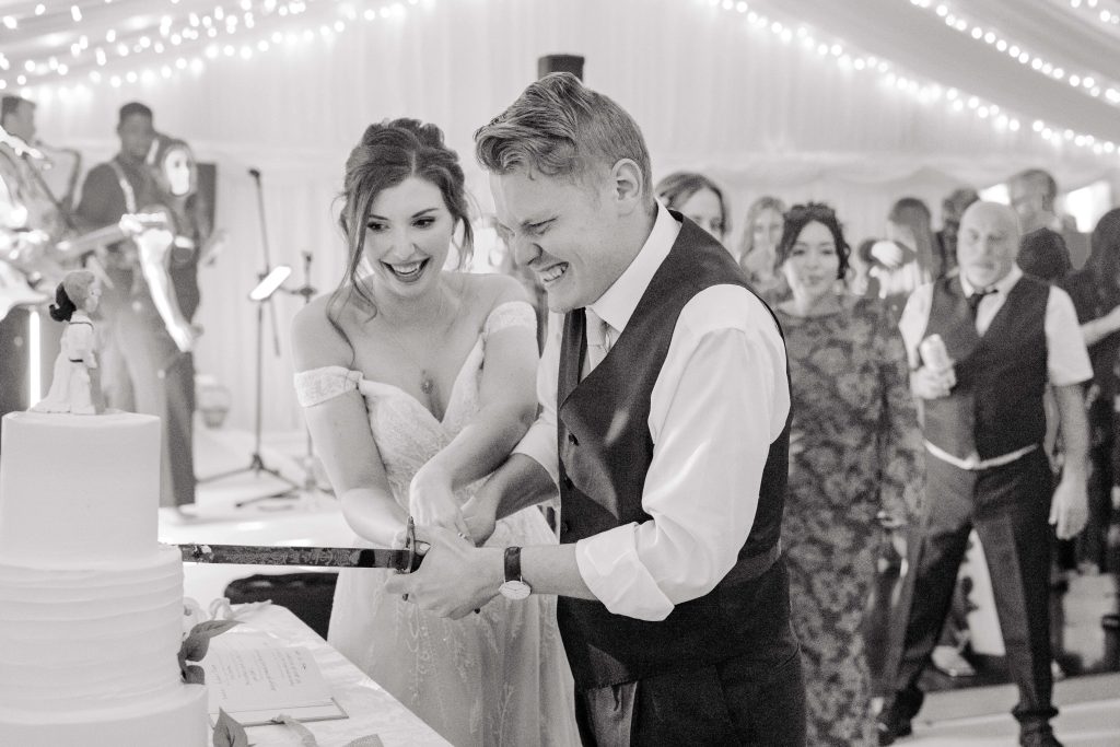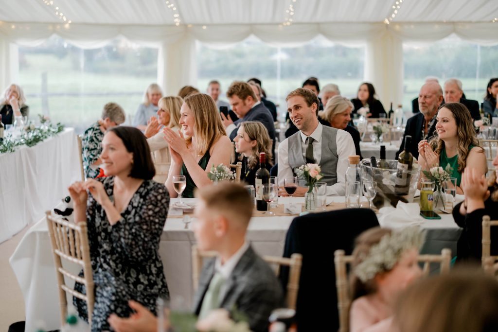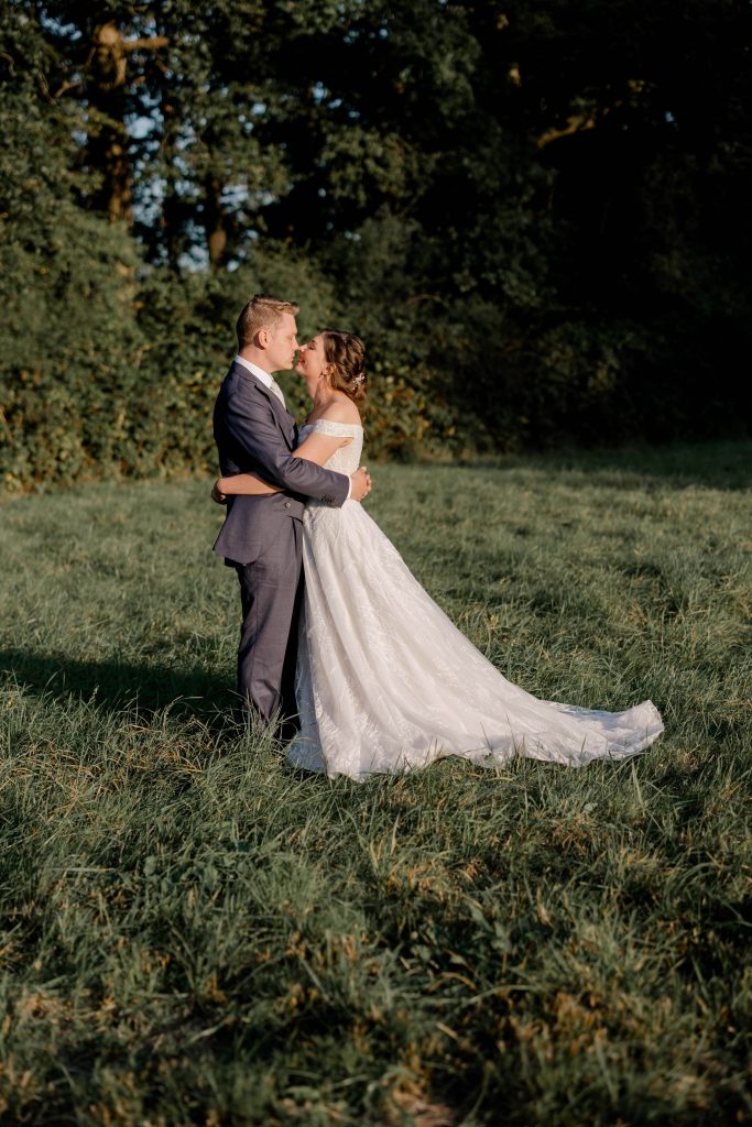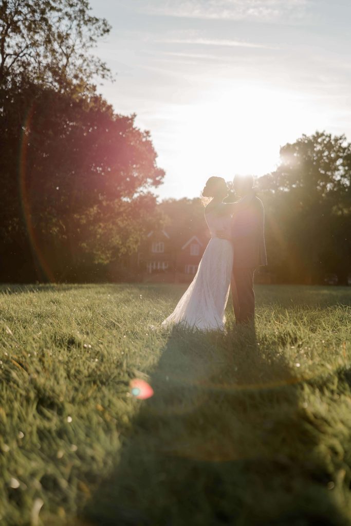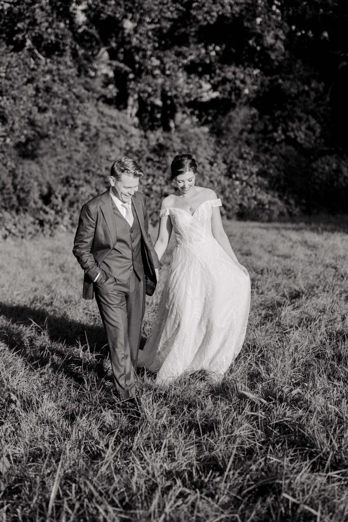 As the couple finished their portraits, guests began to arrive at the house, transitioning seamlessly into the marquee reception. The garden provided the perfect backdrop as guests mingled under the September sun, enjoying the warm and inviting atmosphere. To prioritise Kirsty and Hugh’s time with their loved ones, we scheduled photographs during natural pauses in the day. Golden hour provided a few more quiet moments to capture intimate, timeless shots of the couple.