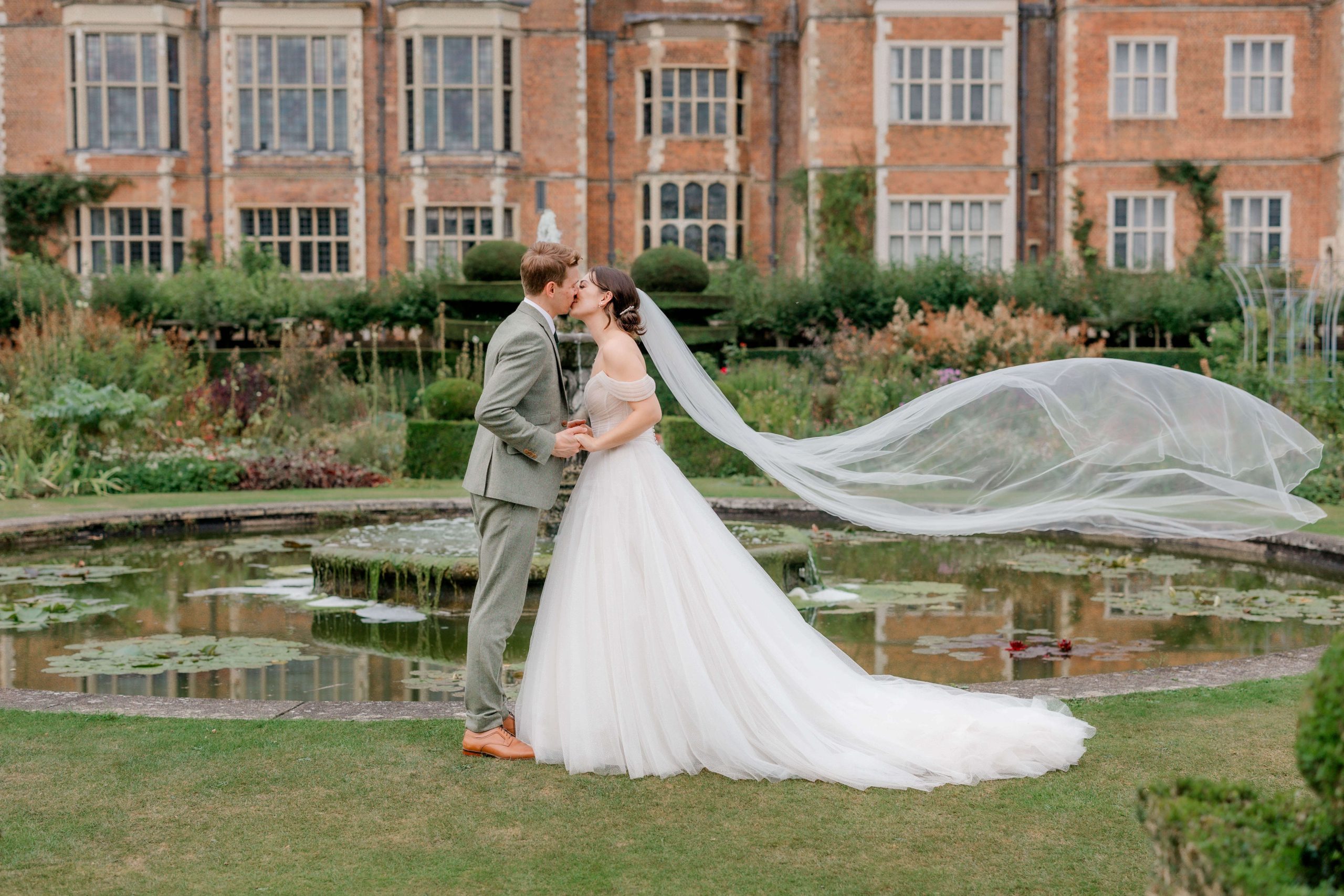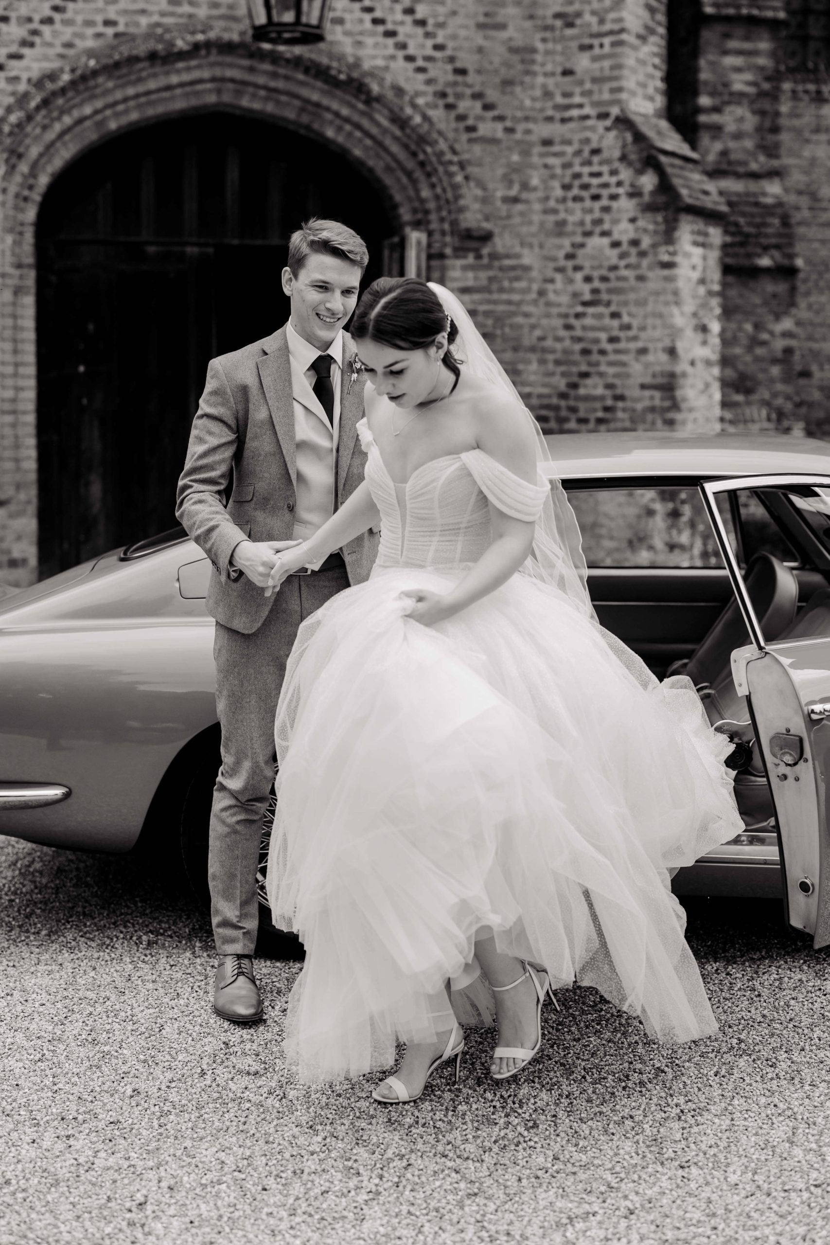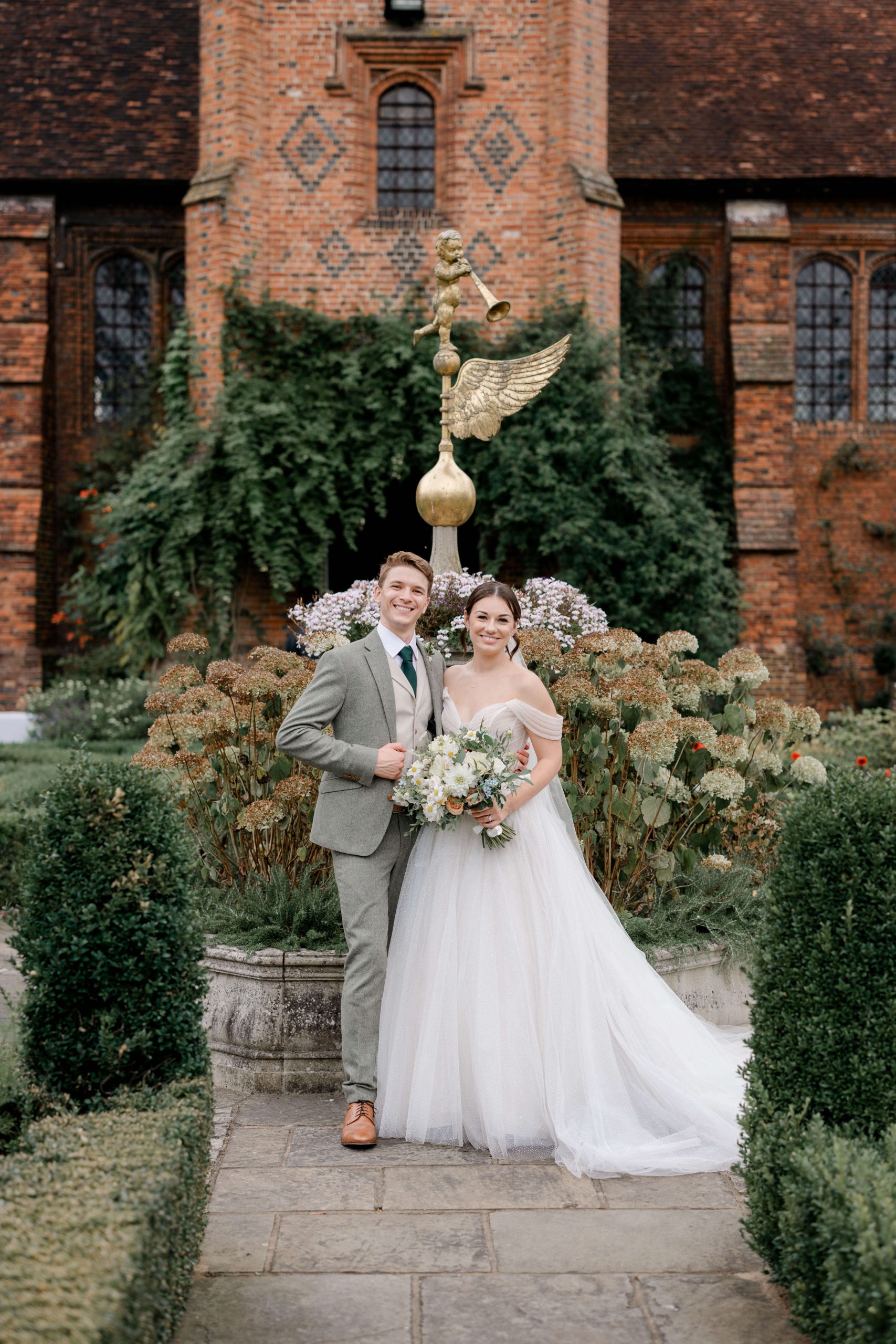 Afterward, we made our way to Hatfield House, a truly stunning venue in Hertfordshire with gorgeous gardens and a timeless feel. Lucy and Harry arrived in vintage wedding cars, which suited them perfectly and made for some incredible photos. Hatfield House’s backdrop, with its grand architecture and peaceful gardens, really allowed for those natural, candid shots they were after.